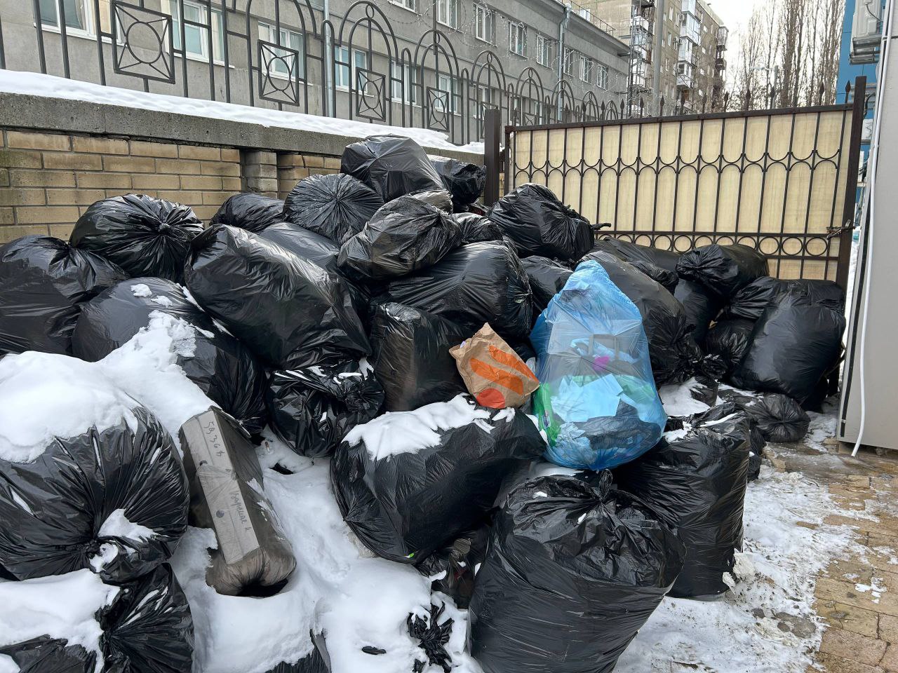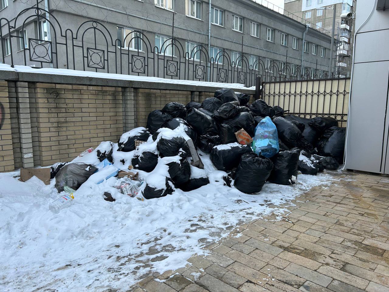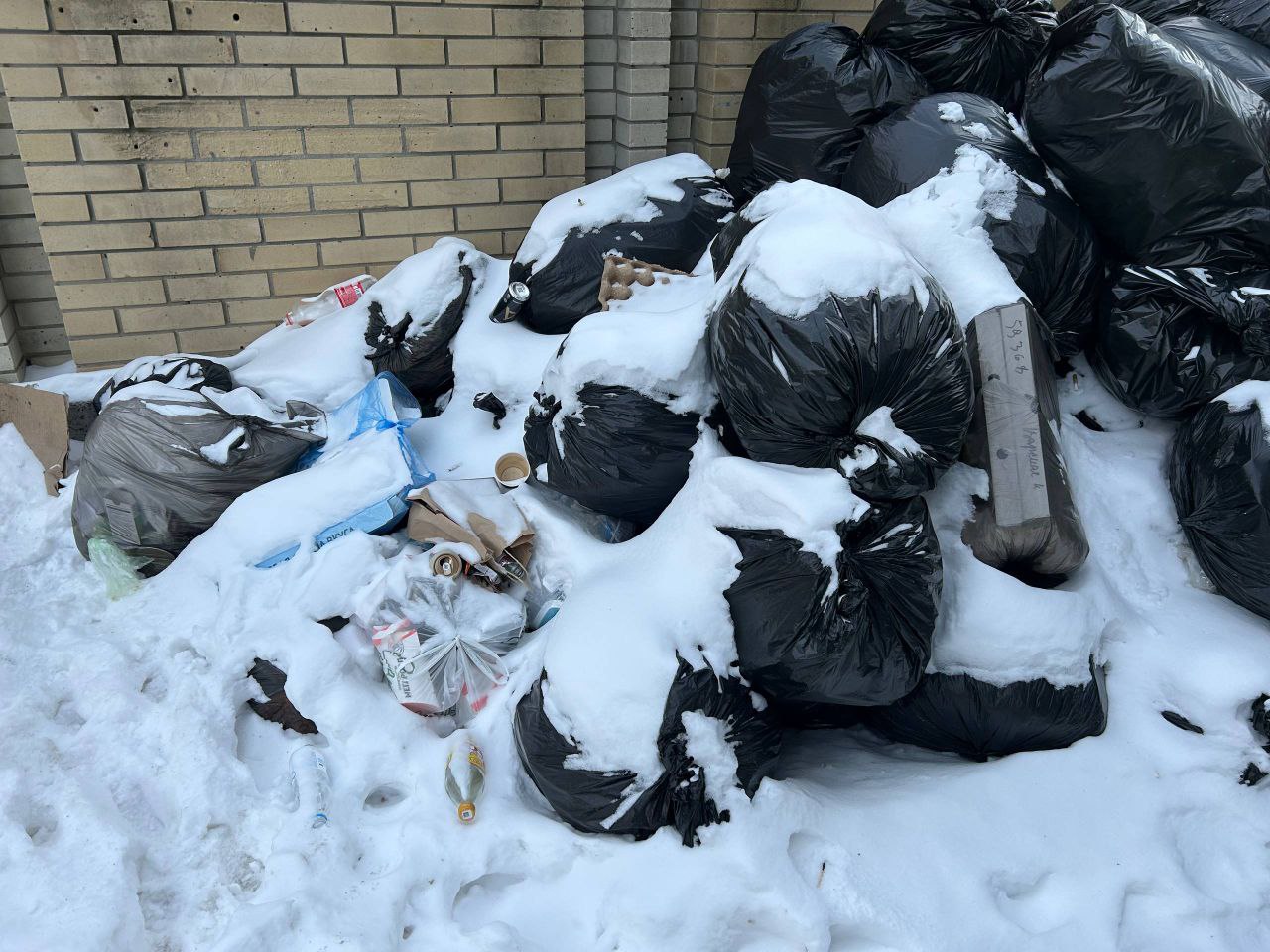 Около забора цирка кучи мусора уже припорошило снегом. Кто-то начал подкидывать туда ещё бытовой мусор.