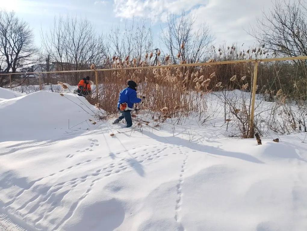 Проводятся и работы по покосу камыша и сухой растительности на участках, где в весенне-летний период осуществлять покос проблематично из-за подтоплений.