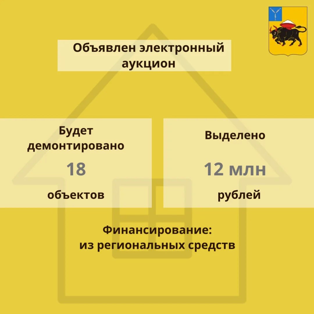 Объявлен электронный аукцион на работы по сносу и зачистке земельных участков в отношении 18 объектов капитального строительства.