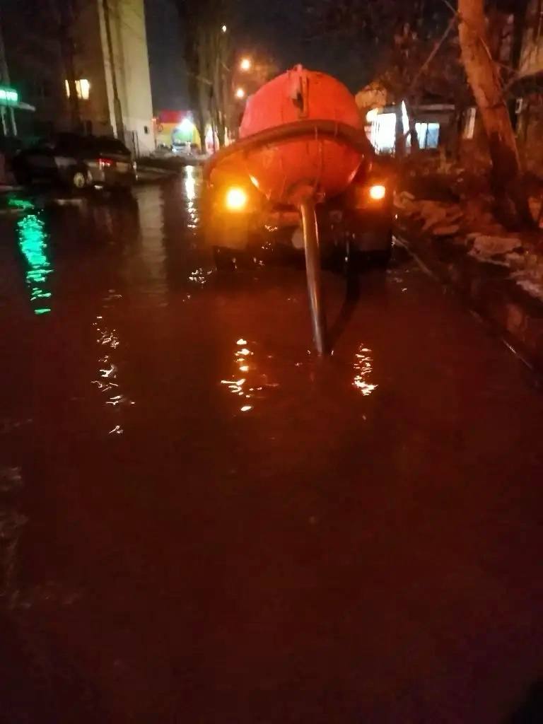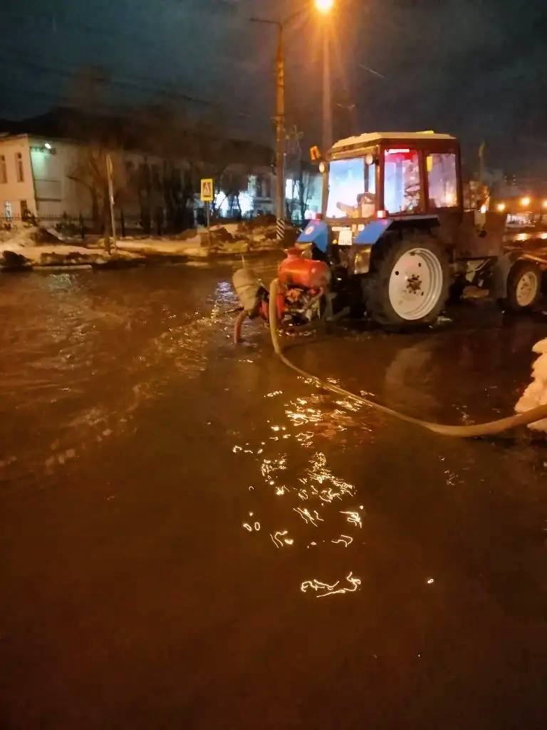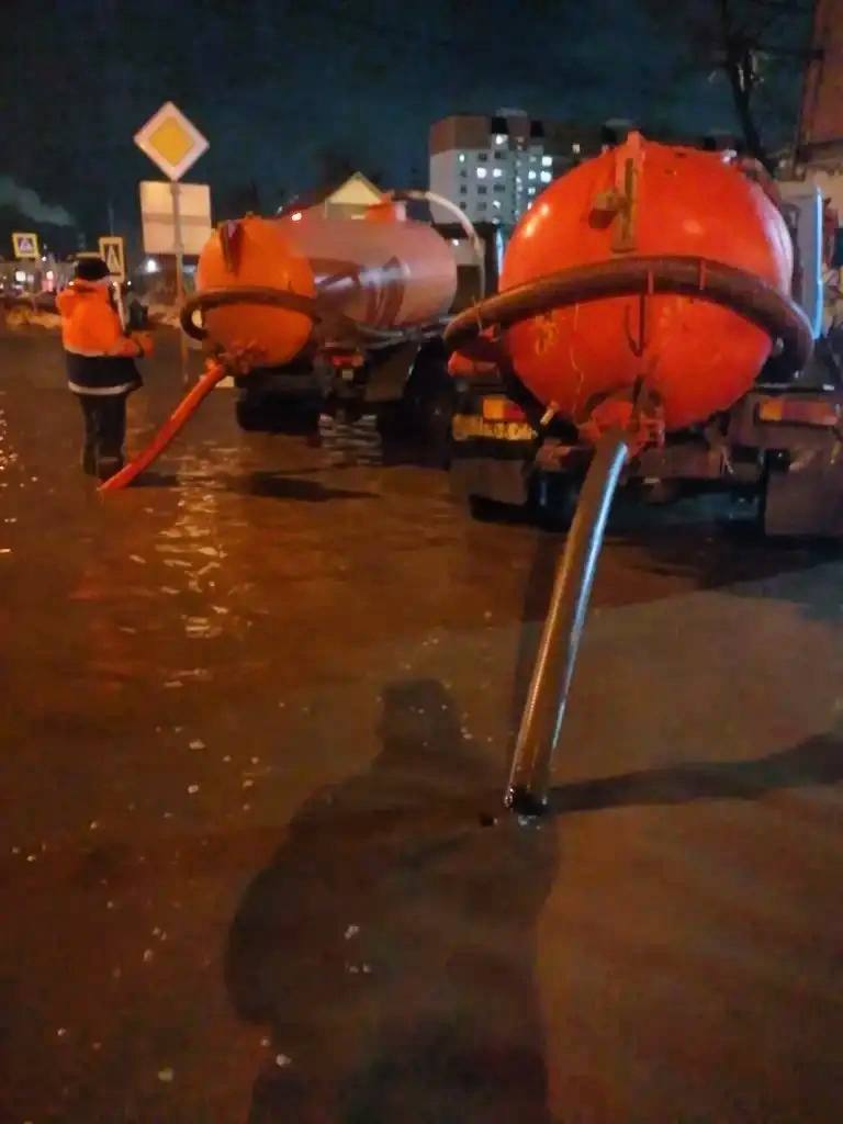 В ночные часы активно продолжали работы по откачке талых вод в городе и обработке тротуаров