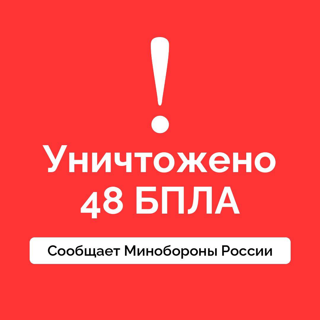Всего в небе над Россией в ночь на 5 марта перехвачено и уничтожено 48 украинских беспилотных летательных аппаратов