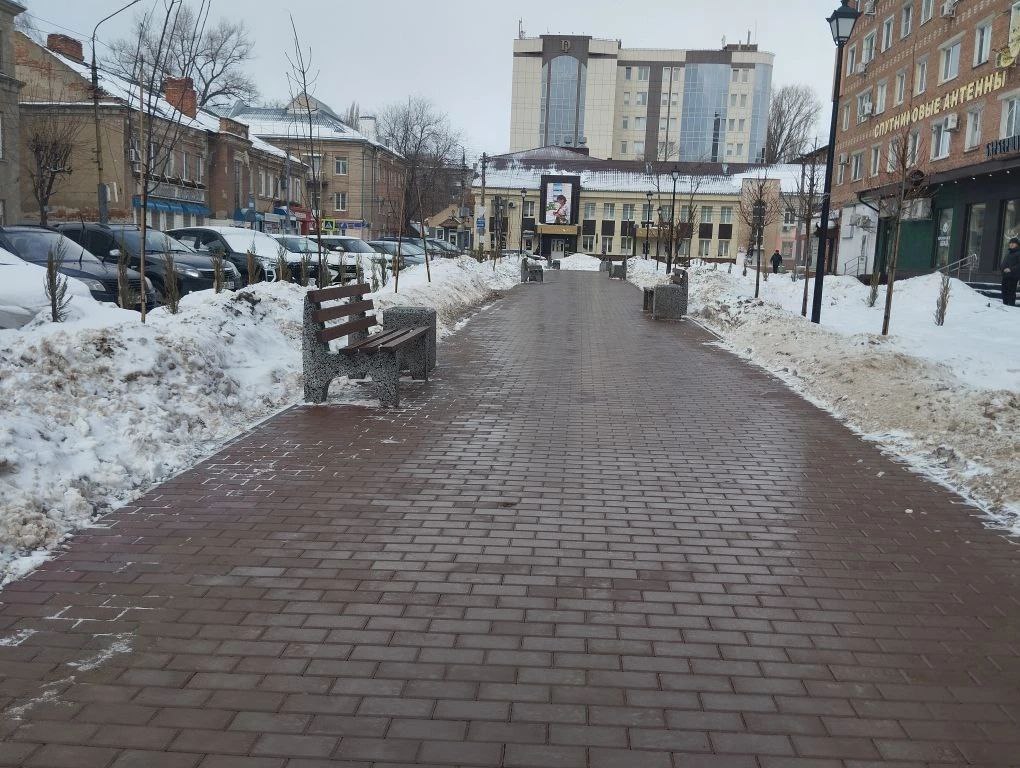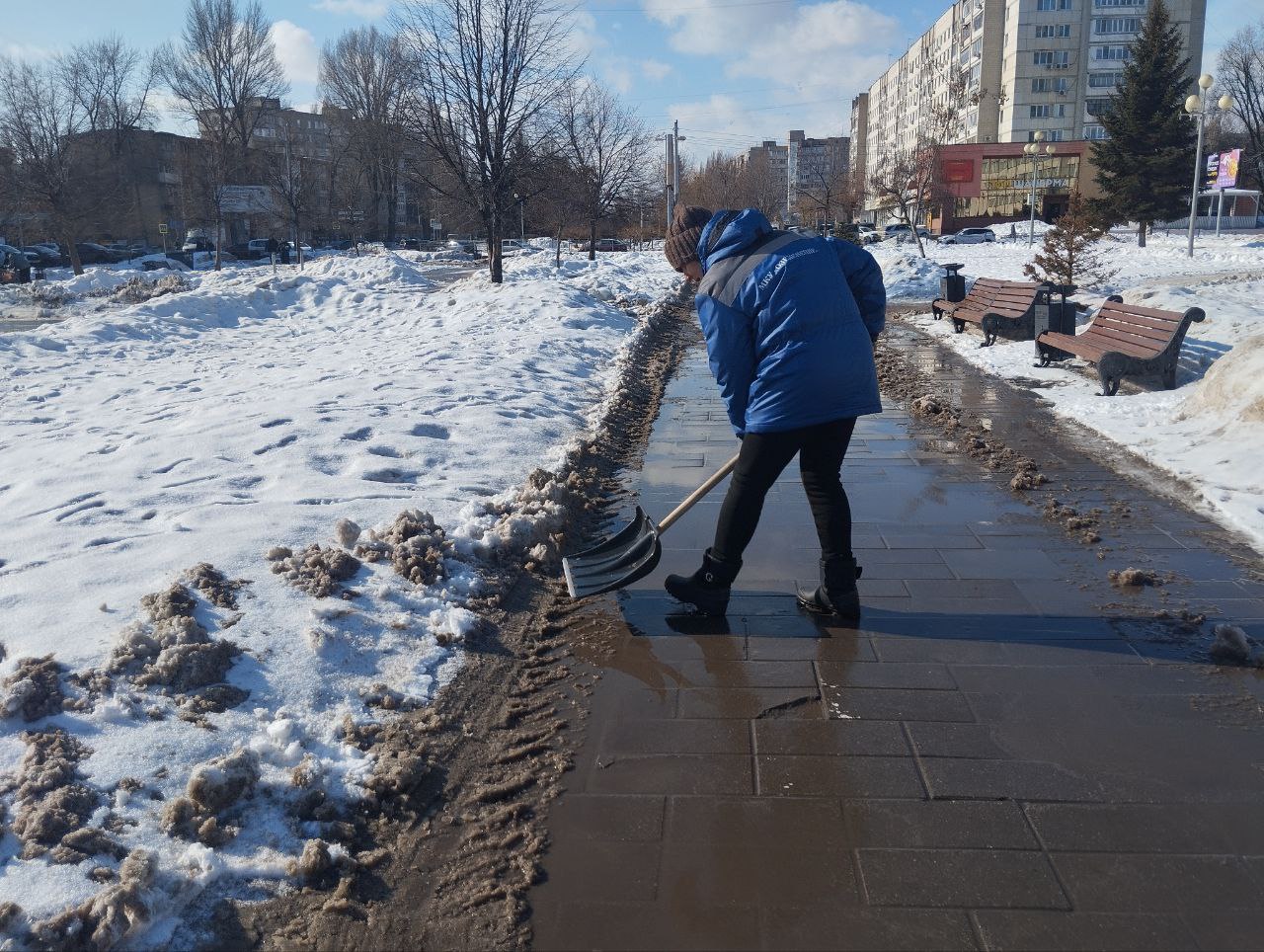 Рабочие зелёного хозяйства и механизированная техника с самого утра ведут работу по прочистке пешеходных дорожек от снега: