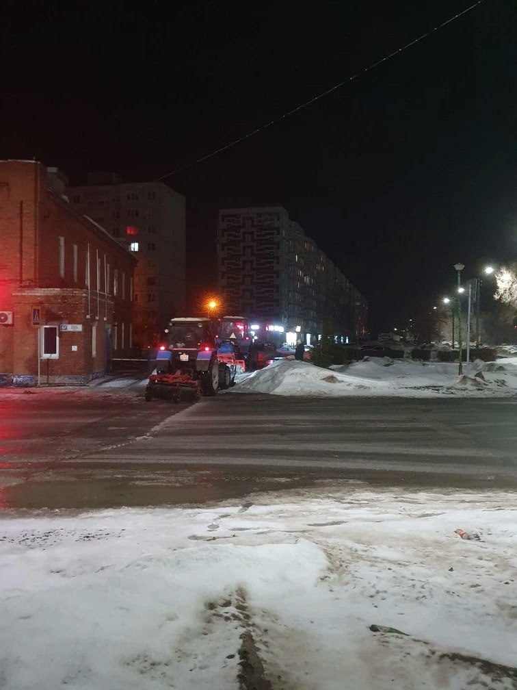 Сегодня ночью коммунальщики осуществляли погрузку и вывоз снега с остановок и пешеходных переходов по улицам Мичурина и Ватутина. Также велась очистка прилотковых зон дорог на улице Строительной.