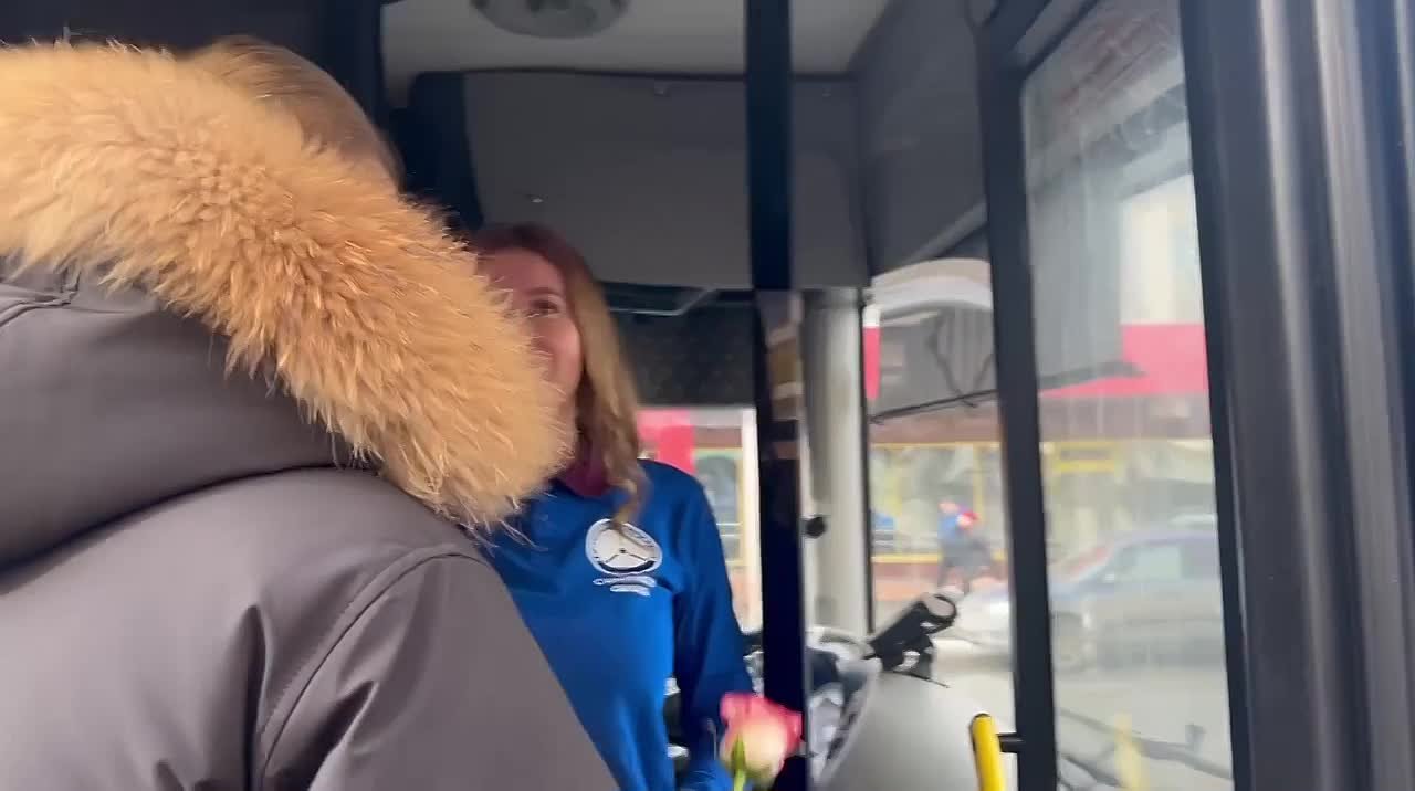 Сегодня на перекрёстке Московской и Рахова устроили цветочный сюрприз: министр транспорта Николай Сергеев ловил автобусы, чтобы поздравить женщин-водителей и кондукторов с 8 Марта.
