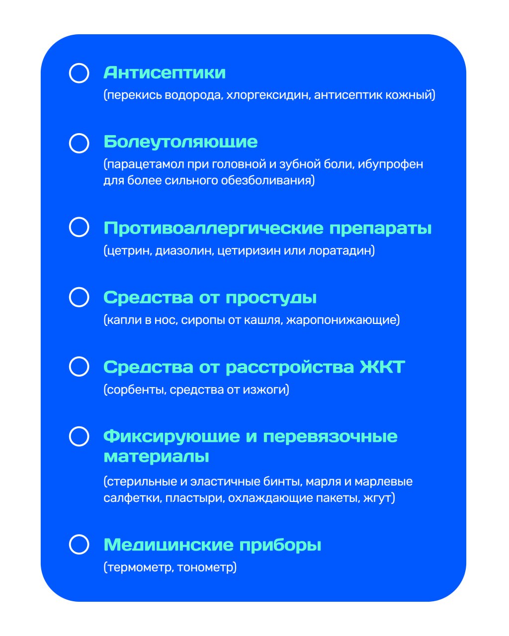 Давайте посмотрим вместе, а заодно сверимся с минимальным набором медикаментов и средств, который должен быть в каждой домашней аптечке.
