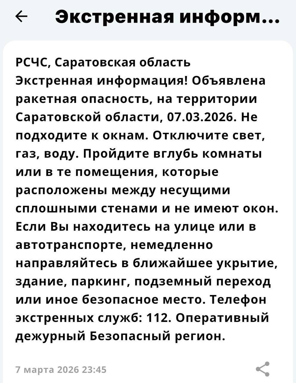 От Министерства обороны поступила информация об угрозе БПЛА. Локально в местах возможной угрозы могут работать системы оповещения. Все экстренные службы приведены в полную готовность.