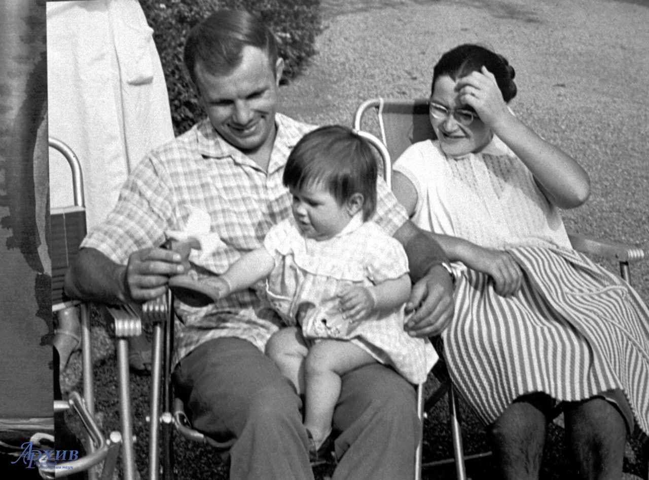 На фото: Первый космонавт планеты Земля Ю.А.Гагарин в своей квартире, играет с дочерями Леной (слева) и Галей (1); Первый космонавт планеты Земля, Герой Советского Союза, лётчик-космонавт СССР, майор Ю.А.Гагарин перед одной из своих многочисленных встреч (2); Первый космонавт планеты Земля Ю.А.Гагарин на одной из бензозаправок в Московской области (3); Первый космонавт планеты Земля Ю.А.Гагарин и его жена В.И.Гагарина с младшей дочкой Галиной на отдыхе (4); Первый космонавт планеты Земля Ю.А.Гагарин и его жена В.И.Гагарина, на территории Зелёного городка (5).