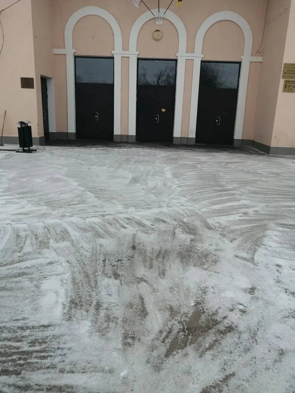 Подходы освобождают от снежных масс, при необходимости проводят обработку дорожек противогололедными материалами и убирают сосульки с крыш.