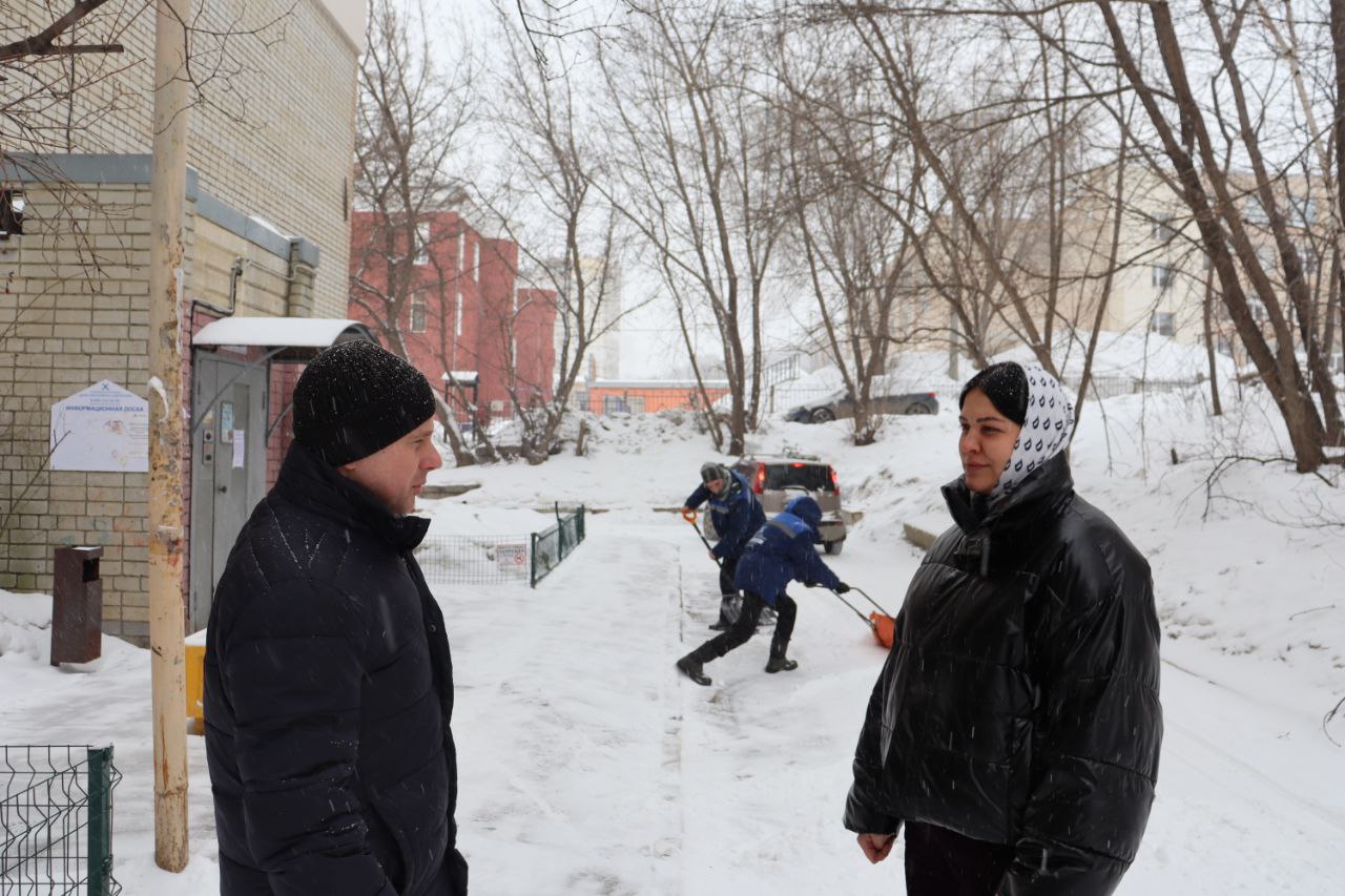 Председатель комитета по ЖКХ Алексей Сидоров вместе с и.о. заместителя главы администрации Волжского района по благоустройству Кристиной Ендовицкой проконтролировал уборку дворов.