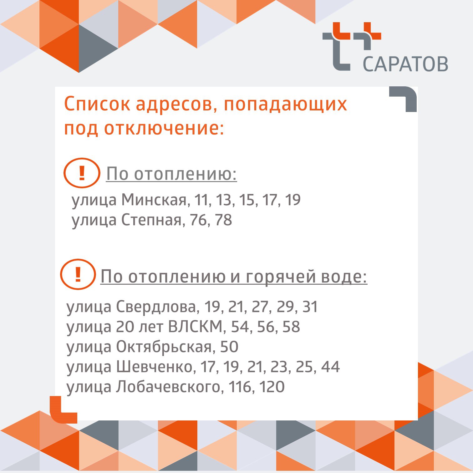 Приложим максимум усилий, чтобы восстановить отопление и горячее водоснабжение как можно оперативнее.