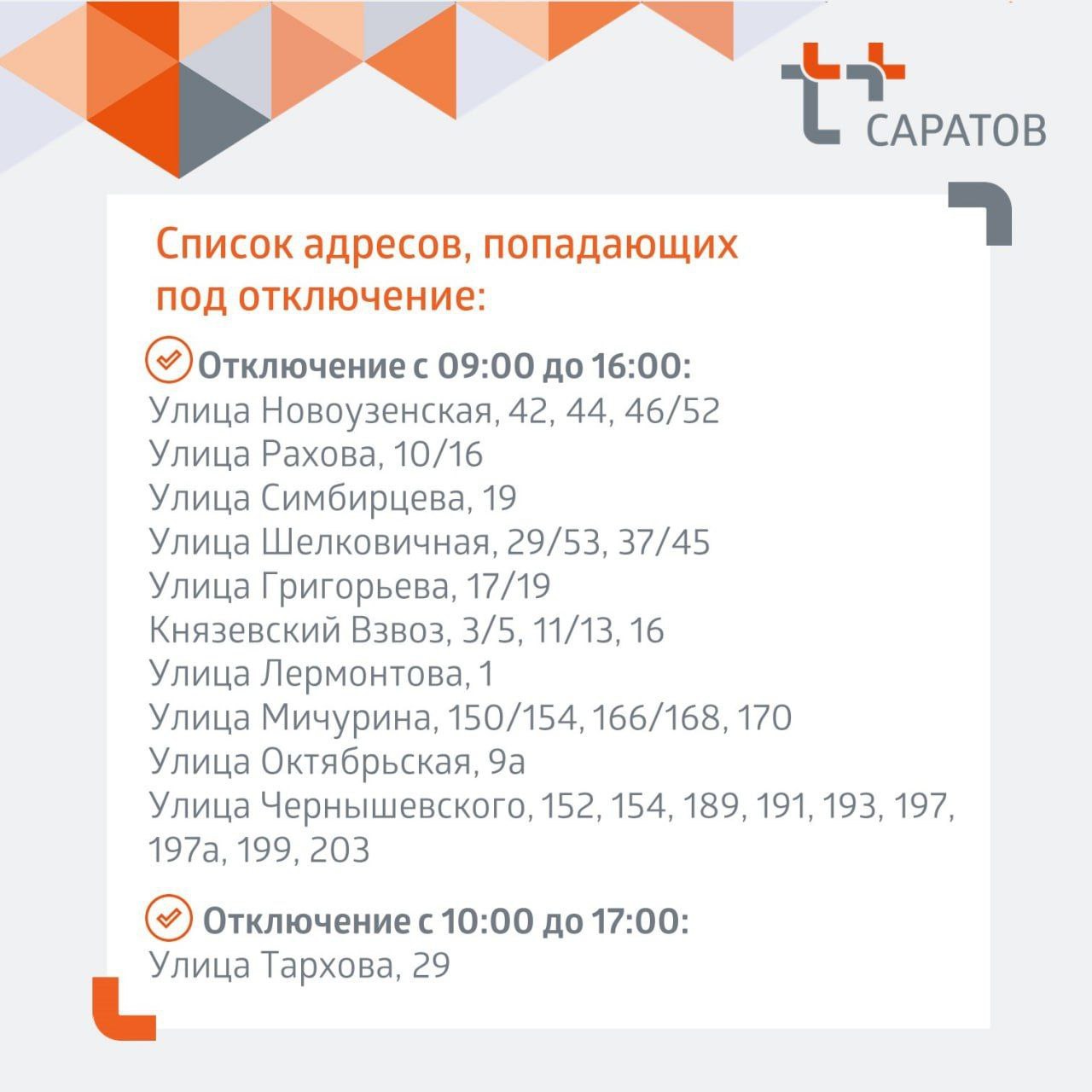 Адреса отключений и планируемое время окончания работ - в карточках