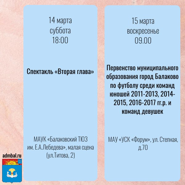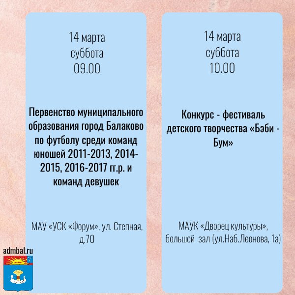 Какие мероприятия пройдут в предстоящие выходные дни на территории Балаковского района? Смотрите в карточках
