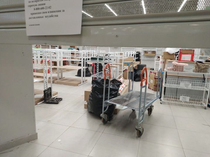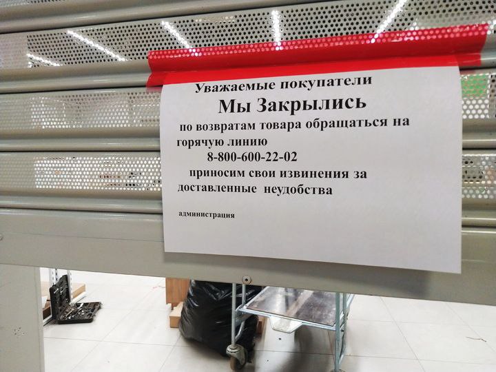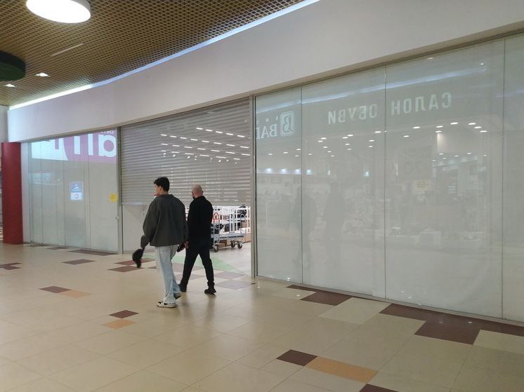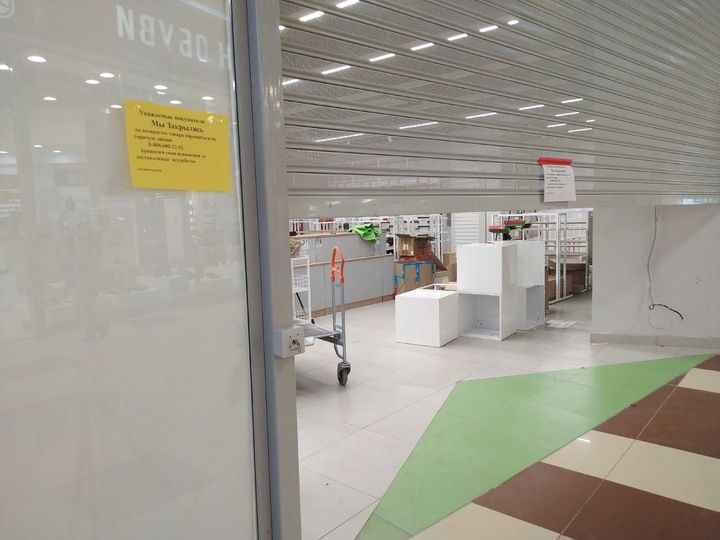 Магазин в ТЦ «Оранжевый» перестал работать. Вывеску сняли, продавцы упаковывают остатки.