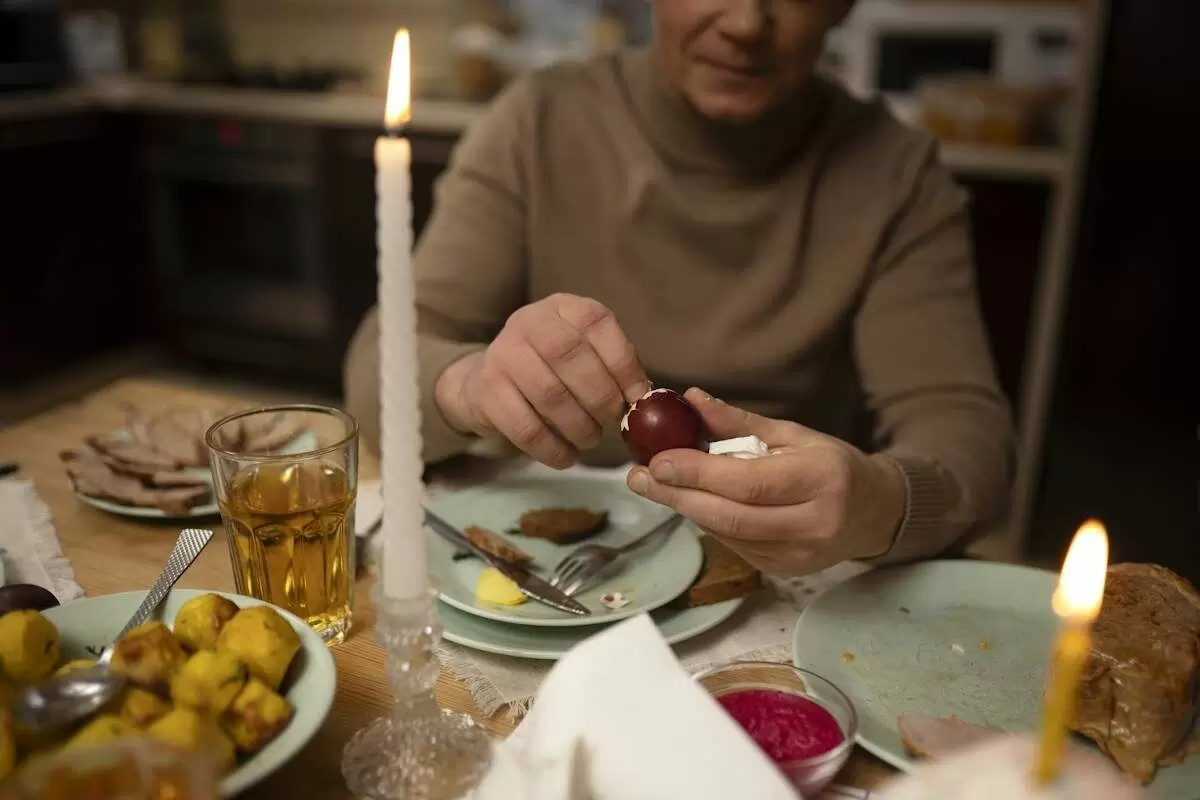 - Первый праздничный день: Обратите внимание на умеренность. Не стоит пытаться отведать все запрещенные блюда сразу. Достаточно съесть немного мяса или творога и ограничиться легкими закусками, без излишеств.