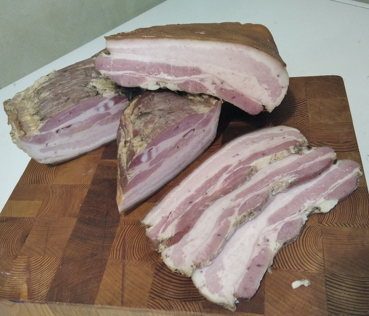 Полученный бекон будет не только удовольствием для глаз, но и для вкусовых рецепторов. Он отлично подойдёт для бутербродов или в качестве дополнения к яичнице на завтрак. Попробуйте и насладитесь вкусом домашнего бекона!