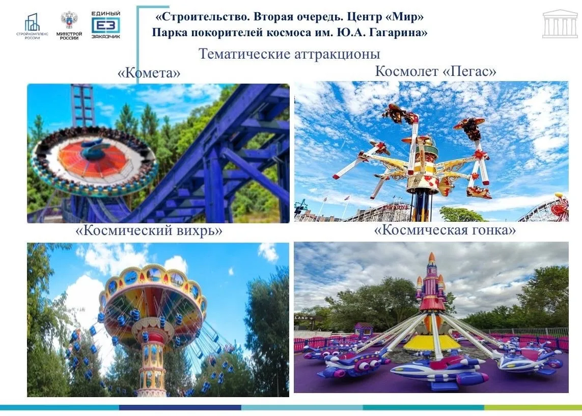Спикер проводил совещание по строительству второй очереди Парка покорителей космоса имени Гагарина. В мероприятии участвовал первый заместитель министра строительства и ЖКХ РФ Александр Ломакин, первый заместитель министра культуры РФ Сергей Обрывалин, заместитель гендиректора ППК «Единый заказчик в сфере строительства» Владимир Соколов. На данный момент подрядчик приступил к выполнению подготовительных работ. Ранее Главгосэкспертиза России выдала положительное заключение на строительство.