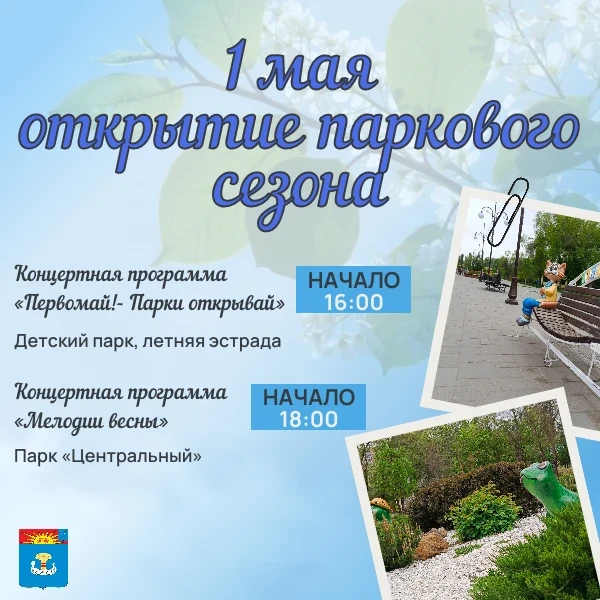 в 16:00 в Детском парке на летней эстраде пройдёт концерт «Первомай! Парки открывай».